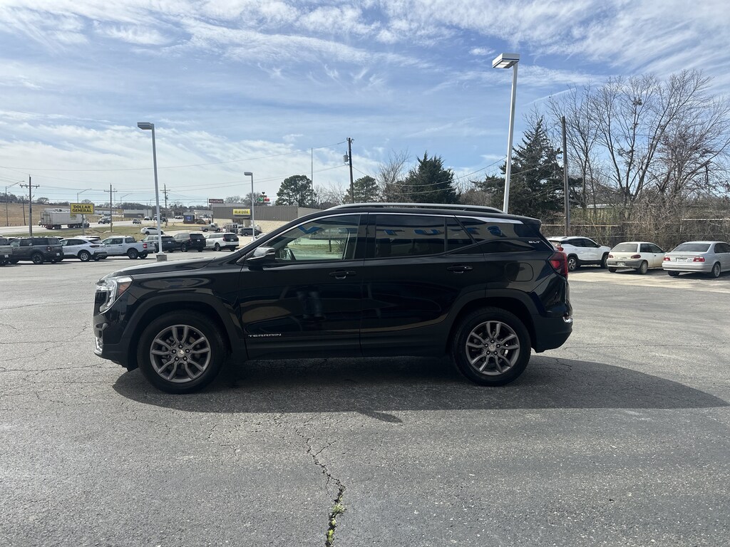 Boasts 28 Highway MPG and 23 City MPG! This GMC Terrain delivers a Turbocharged Gas I4 1.5L/ engine powering this Automatic transmission. TRANSMISSION, 9-SPEED AUTOMATIC 9T45, ELECTRONICALLY-CONTROLLED WITH OVERDRIVE (STD), TIRES, P225/60R18 ALL-SEASON BLACKWALL (STD), SLT PREFERRED EQUIPMENT GROUP includes standard equipment.